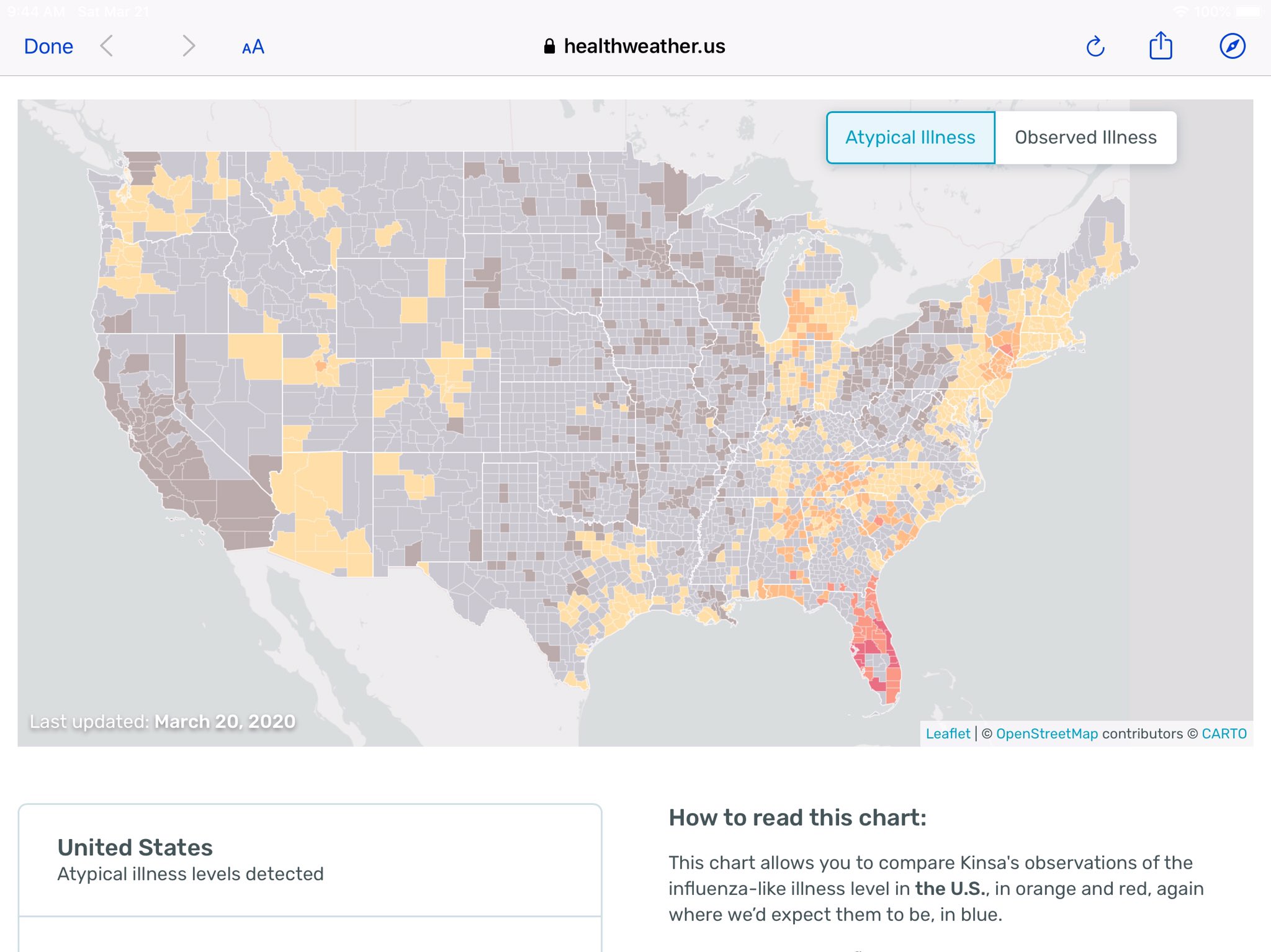 Mais à l'échelle des USA en entier, on voit une tendance à la baisse des symptômes de grippe. Peut-être un effet de l'auto-confinement et de la distanciation sociale.